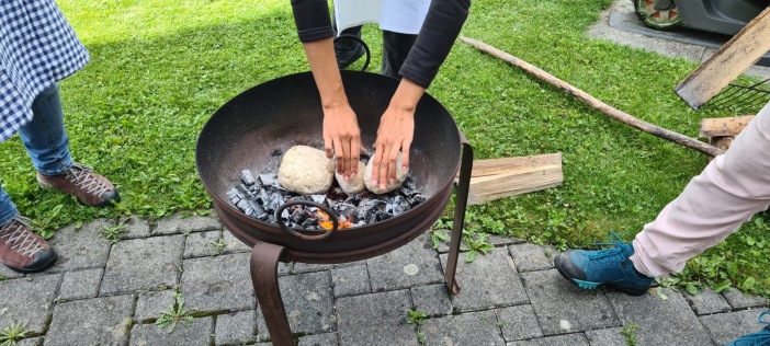 6-8 Teilnehmer kochen auf 3 Feuerschalen ein veganes 3-Gang bio Menu in Glut und Pfannen. Die alt bewährte Art auf dem Feuer zu kochen, hat ihren ganz besonderen Charm. 4 Stunden geniesst du die Zeit in der Gemeinschaft mit kochen, austauschen und essen in der Natur.
